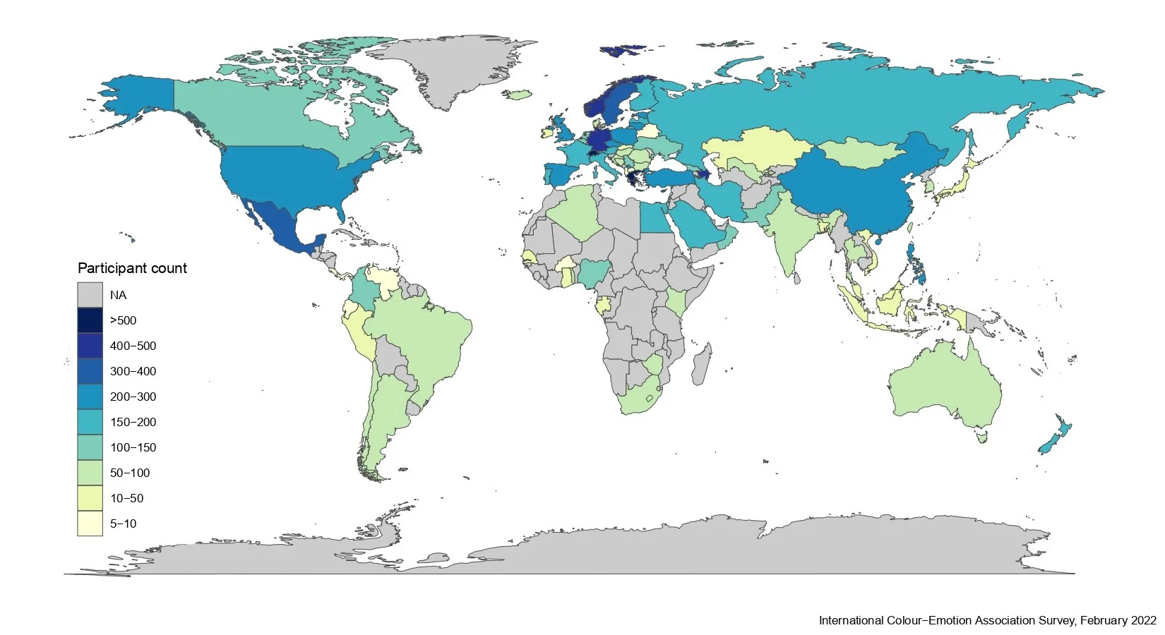 You can see on this map how many people from each country have so far participated (as of February 2022). Bluer colours indicate more participants.